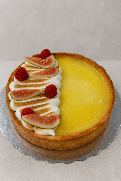A buttery tart shell filled with tangy lemon curd and topped with lightly toasted meringue. 6″